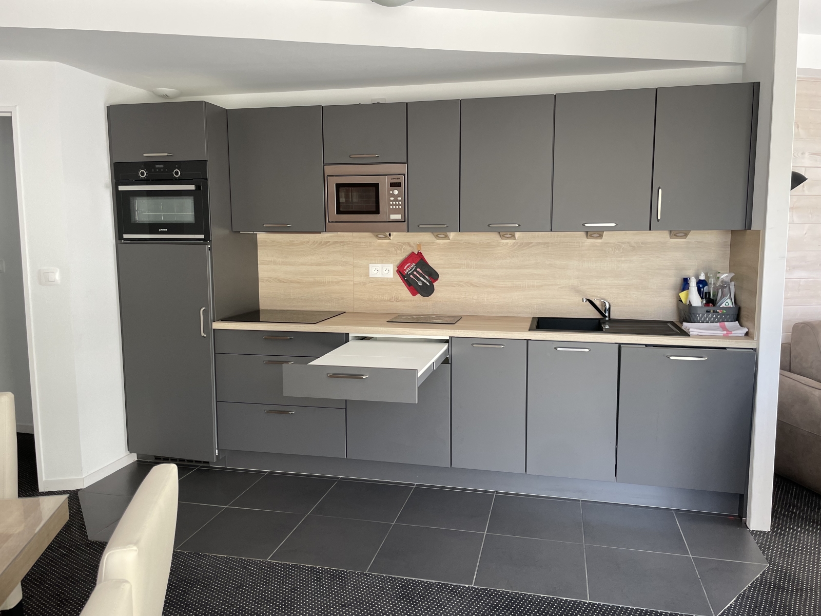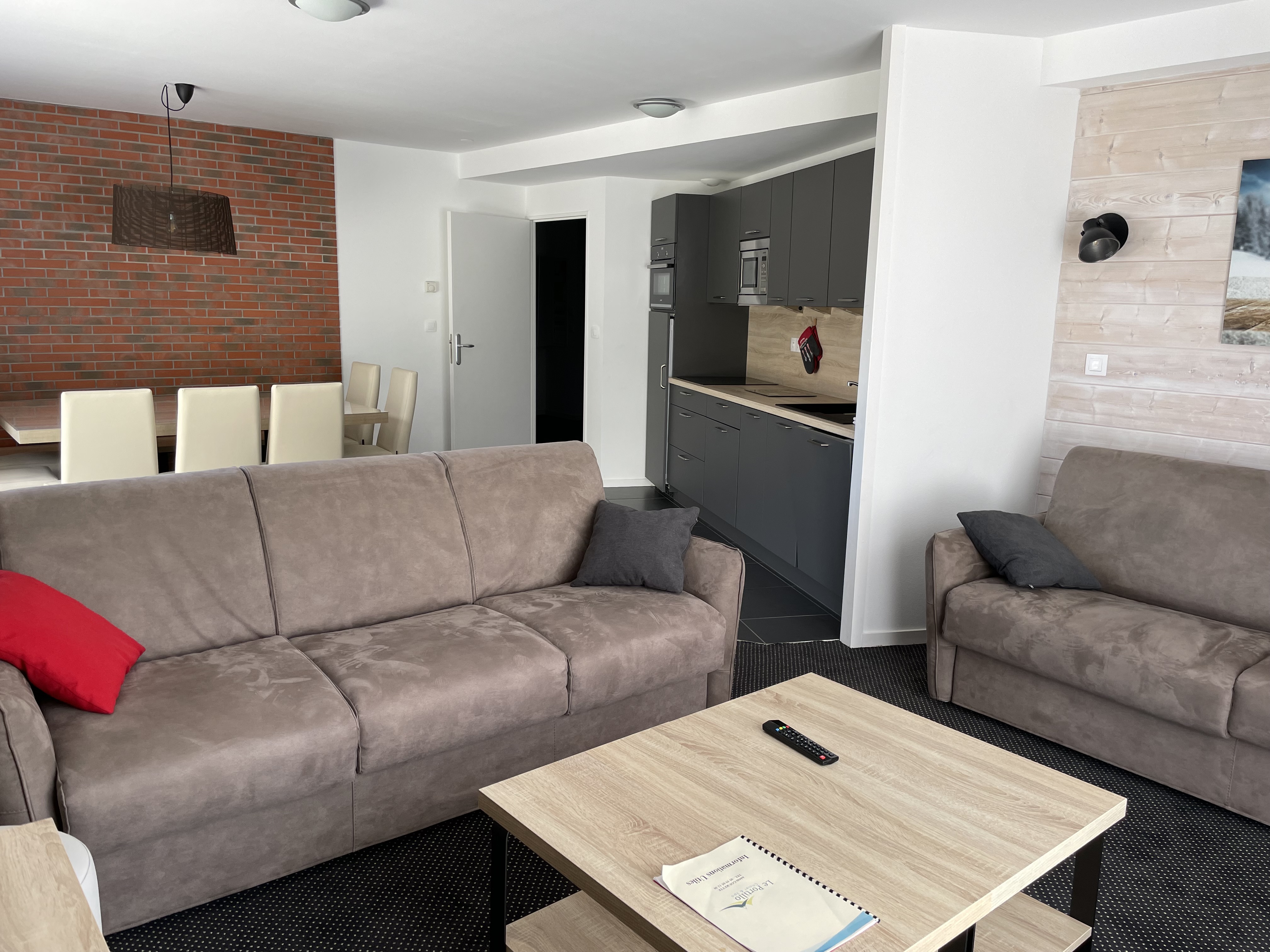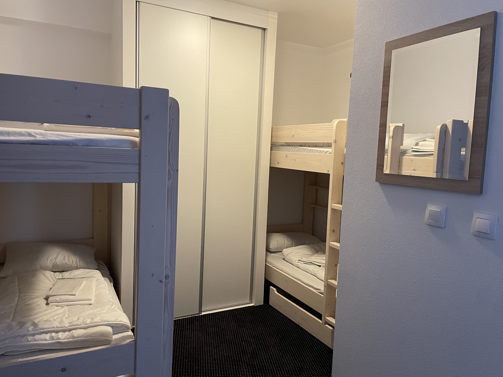 Entrée : Coin montagne 2x2 lits superposés en 90. Chambre1 : lit 140, télévision. Chambre : 2 lits 80.Salle d'eau : douche, lavabo et WC.Salle de bain : baignoire, lavabo, sèche cheveux. 2 WC indépendants Séjour canapé-lit 2 places 160, télévision Cuisine américaine : frigo avec bac conservateur, plaque vitro 4 feux, four, four micro-ondes, lave-vaisselle, cafetière à filtre, grille-pain, bouilloire, robot.NON FUMEUR. DRAPS FOURNIS.En supplément : taxe de séjour. Animaux acceptés et payants.En option : formules RESTAURATION (petit déjeuner, diner, 1/2 pension), linge de toilette, ménage journalier et de départ, arrivée matinale, départ tardif. En Hiver : location de matériel SKILOC, remontées mécaniques SKIPASS, matériel + forfait SKIPLUSS.Les installations aquatiques (piscine, bain à bulles, sont ouvertes en Hiver des vacances de Noël à la fermeture de la station, en Eté du 01/07 au 15/09.