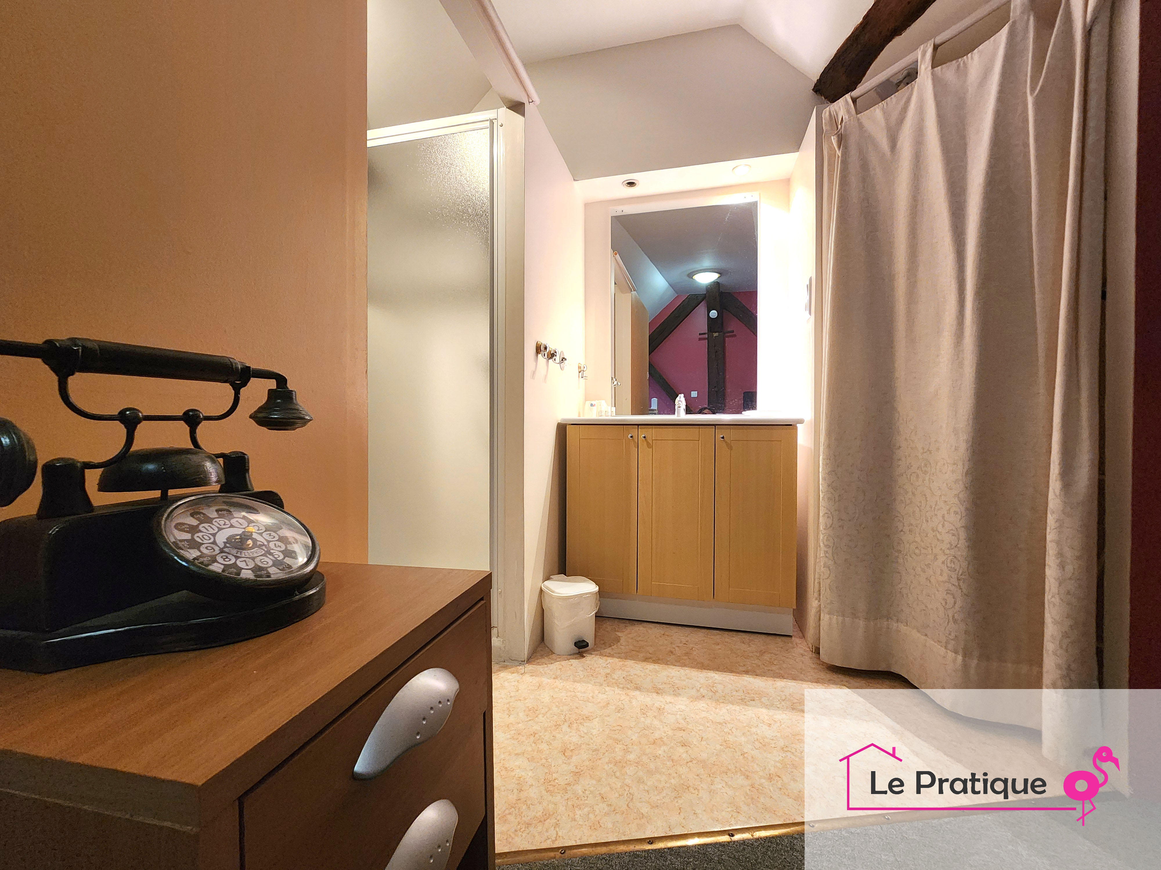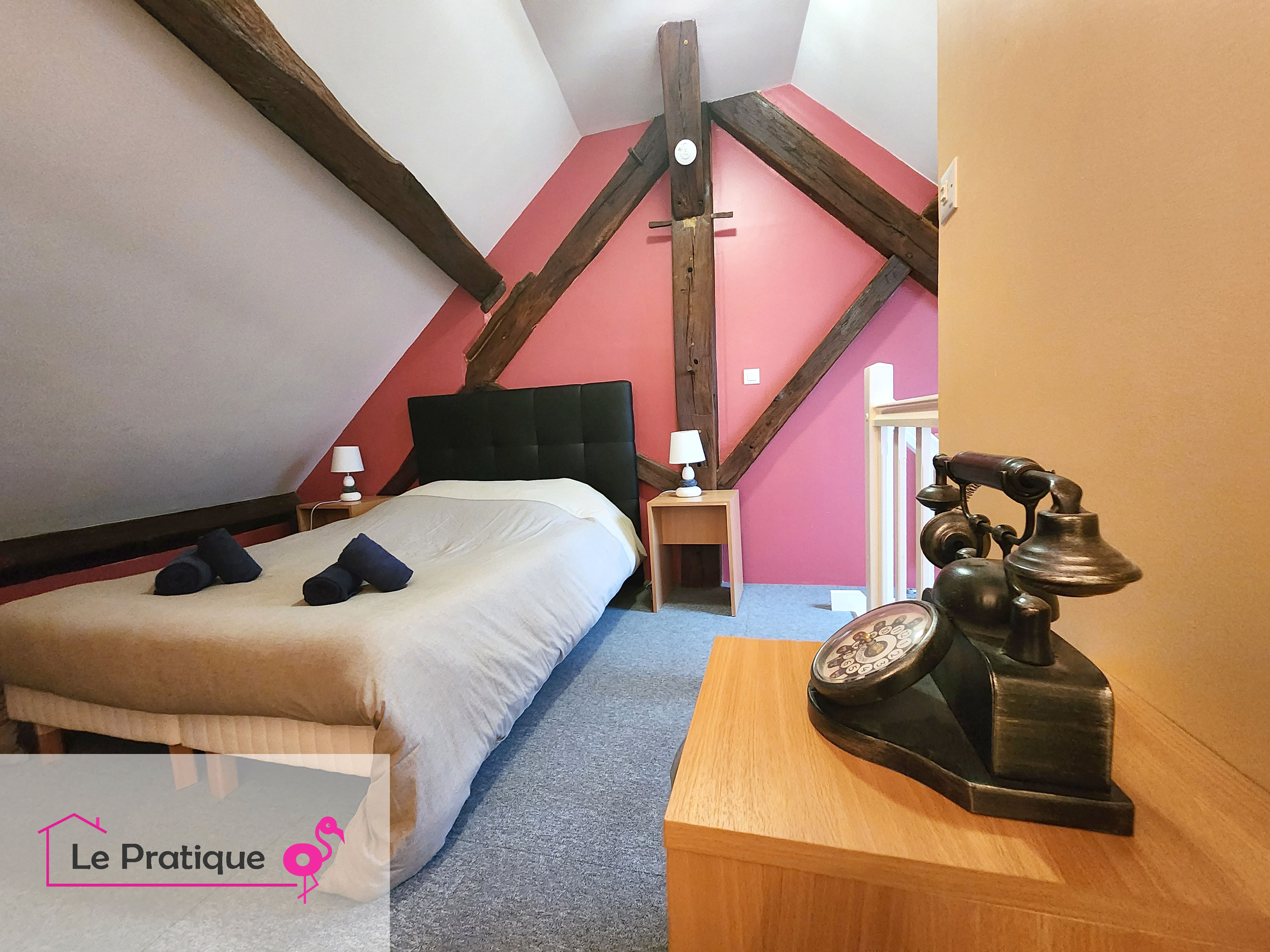 Au rez-de-chaussée, vous profiterez d'une cuisine entièrement équipée avec un coin repas fonctionnel, parfait pour préparer et savourer vos repas en toute convivialité. A l'étage, une chambre confortable avec un lit double (140 x 190) vous attend, ainsi qu'une salle de bain avec douche et WC.