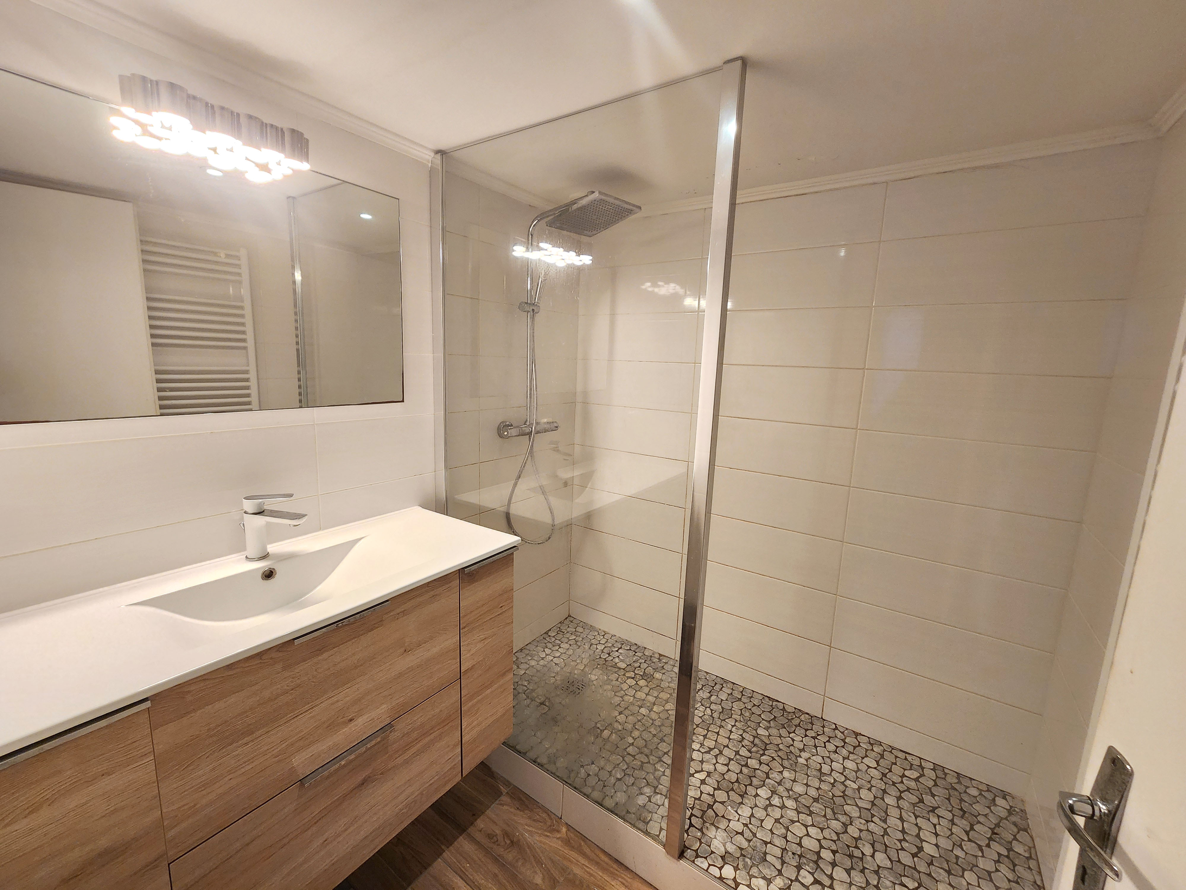 Salle d’eau moderne : Douche, lavabo et équipements récents pour votre confort.