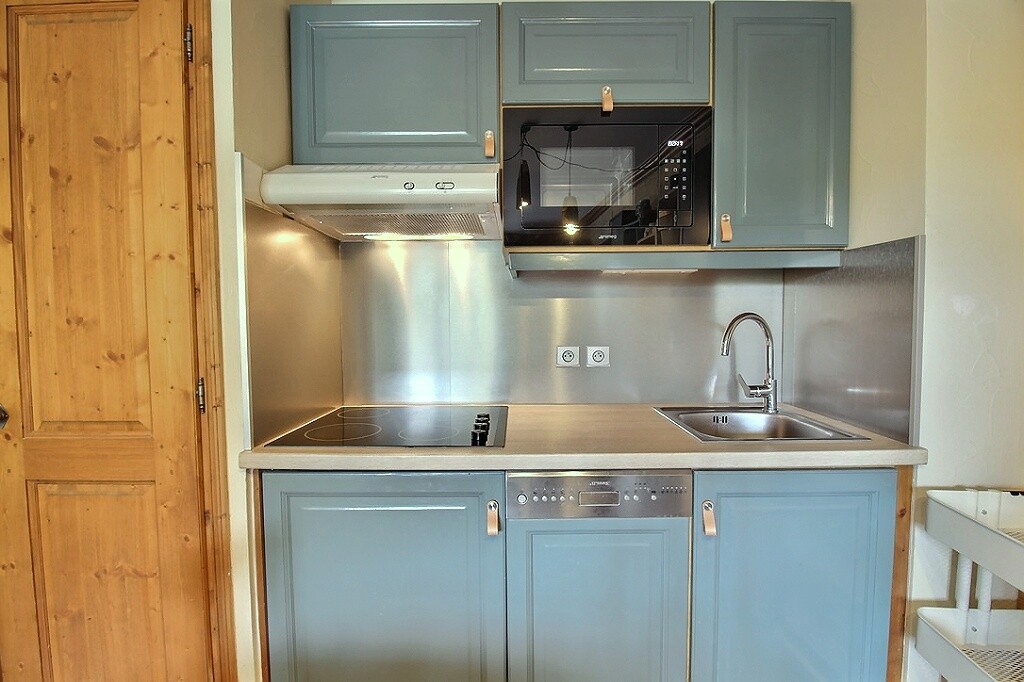 L appartement se compose d'une cuisine ouverte sur salon, avec canapé convertible et accès à une terrasse, d une chambre double et d une salle de bain avec WC séparé.