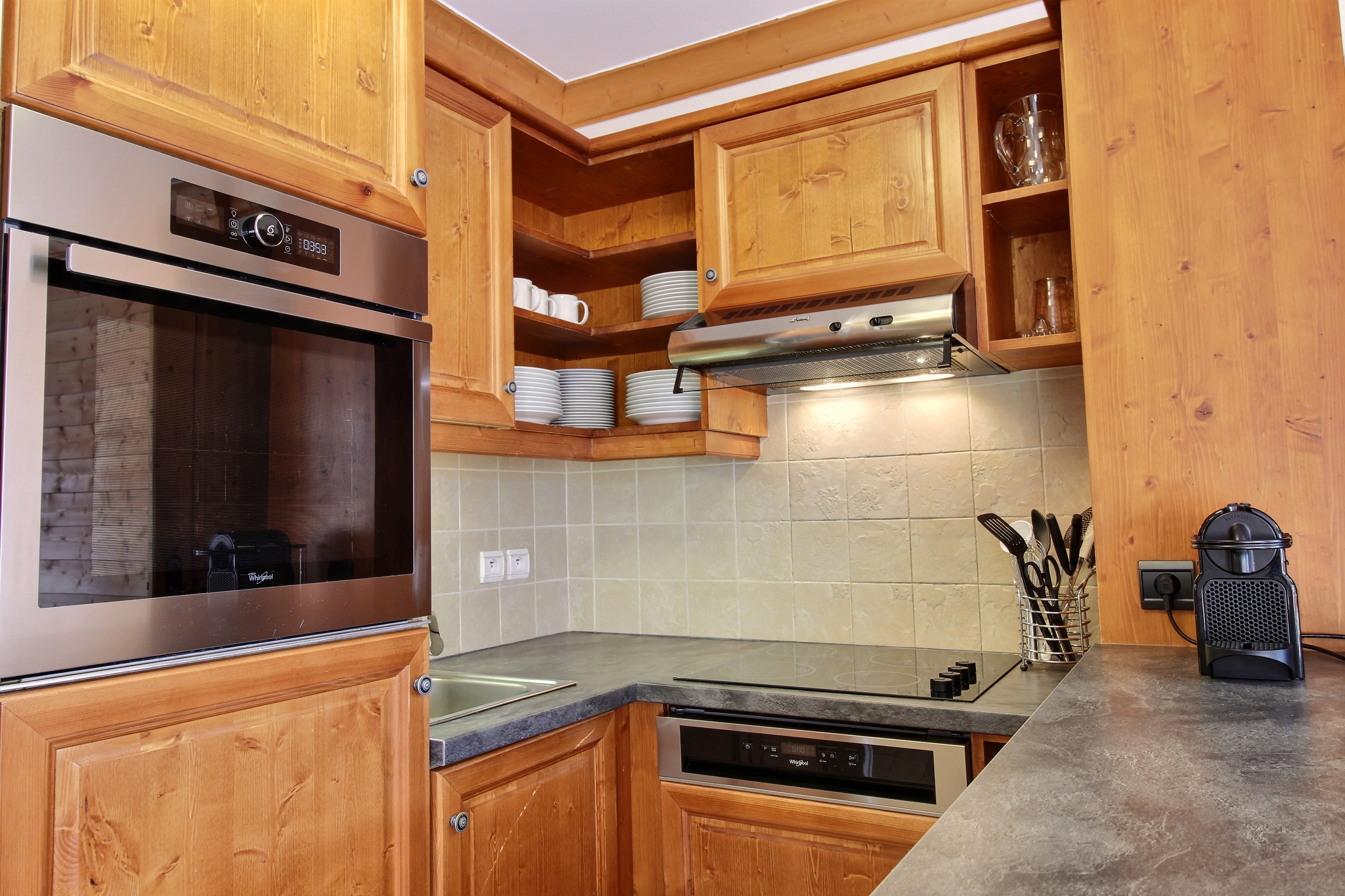 - D'une cuisine équipée, ouverte sur un salon lumineux, avec un canapé convertible, et accès à un balcon offrant une vue sur l'Aiguille Rouge.