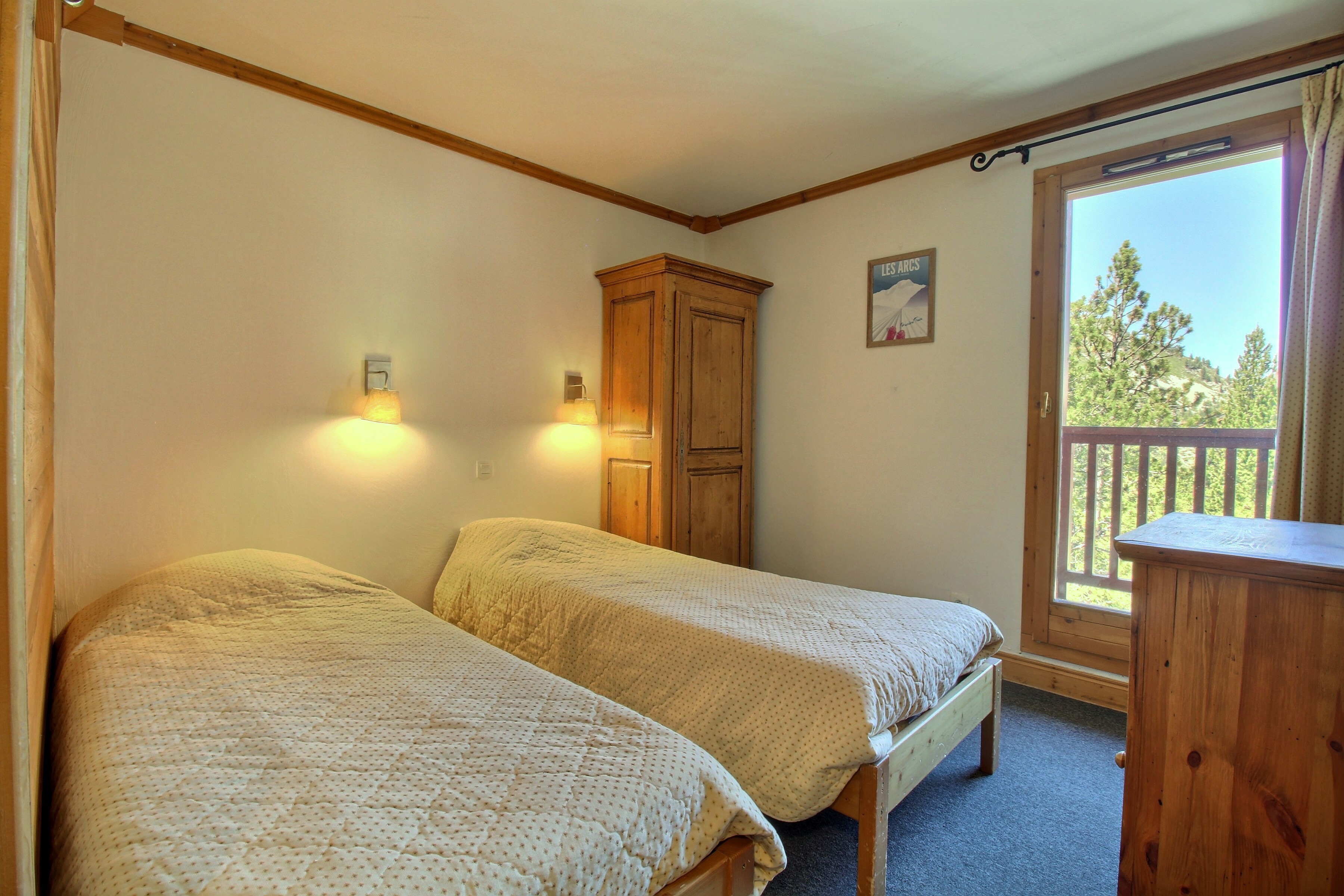 Situé au 1er étage du Chalet Chamois, dans le village "Arolles" des Arcs 2000, l'appartement propose une exposition Sud-Ouest avec vue panoramique sur le domaine skiable des Arcs, le Col de la Chal et le Col des Frêtes.