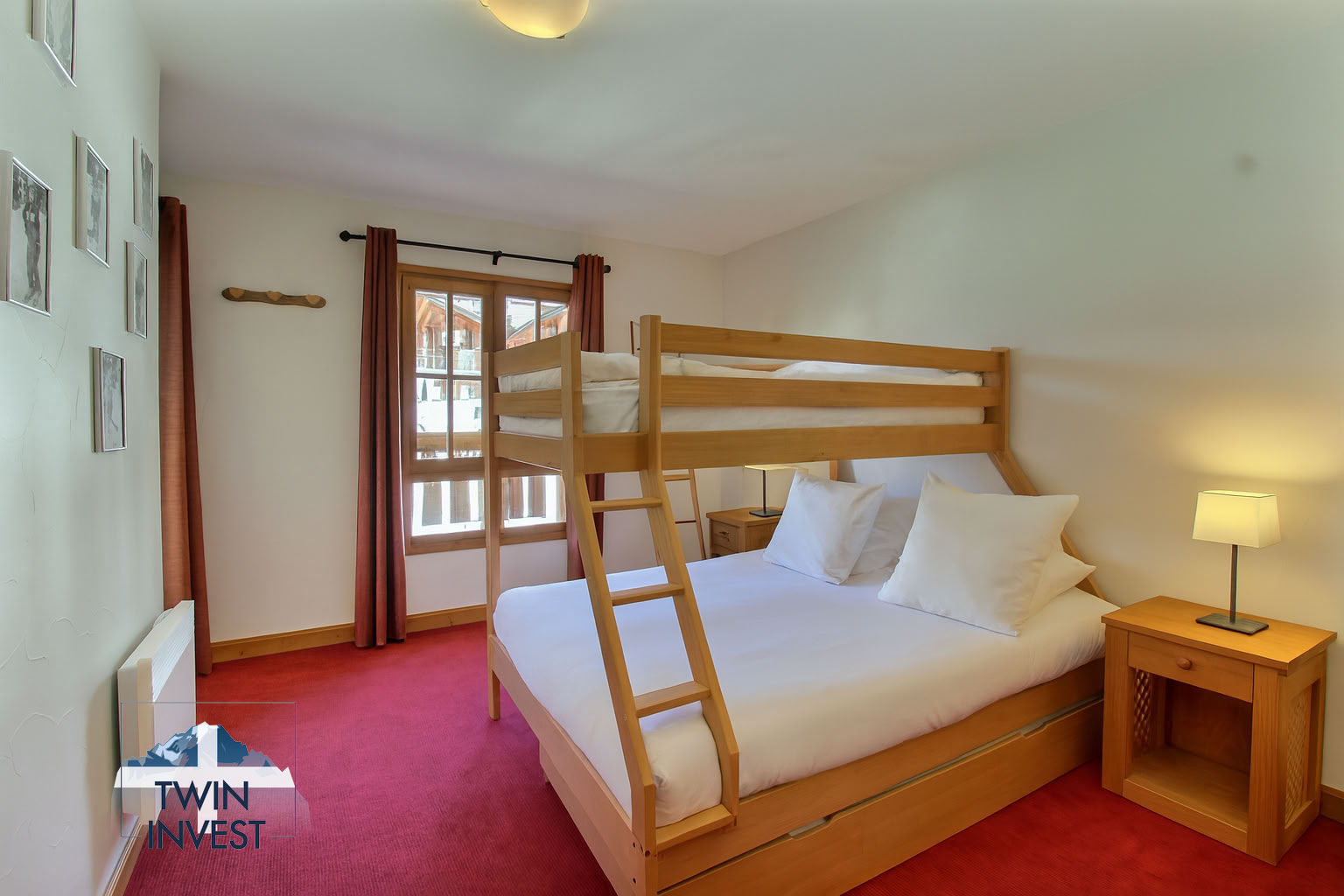 - D'une seconde chambre avec un lit double, un lit simple et des placards de rangement ;