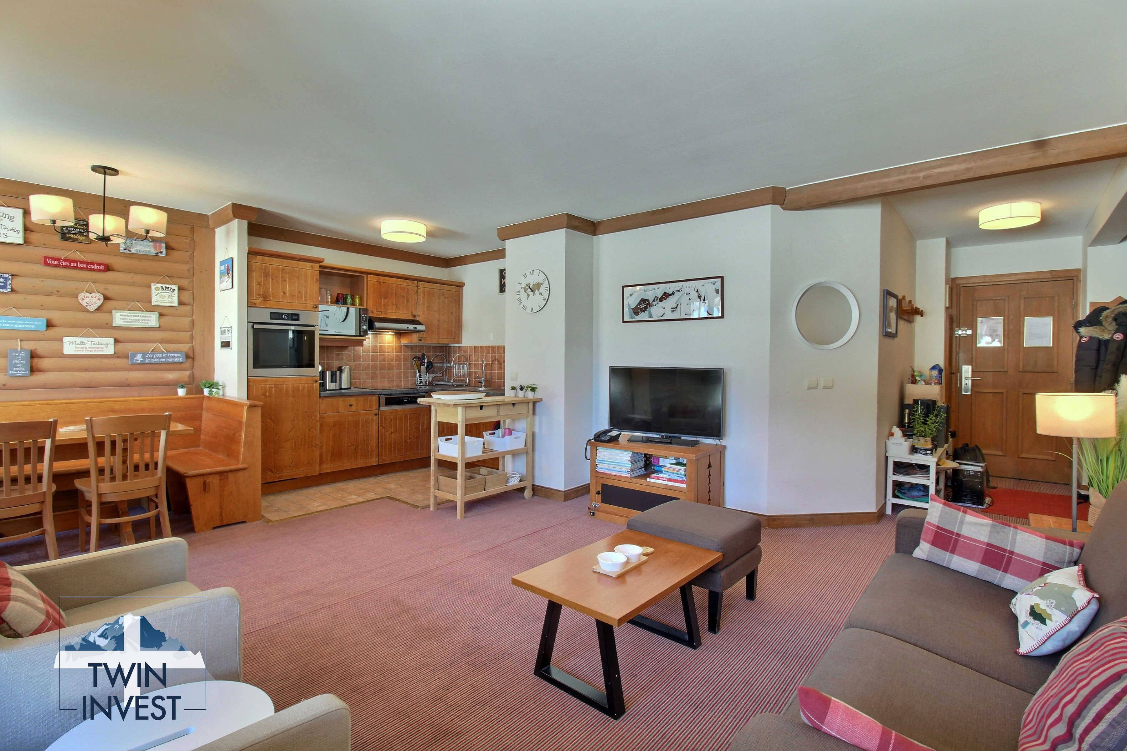 La décoration, à la fois cosy et contemporaine, met en valeur des matériaux authentiques et de qualité, créant une atmosphère à la fois chaleureuse et élégante.