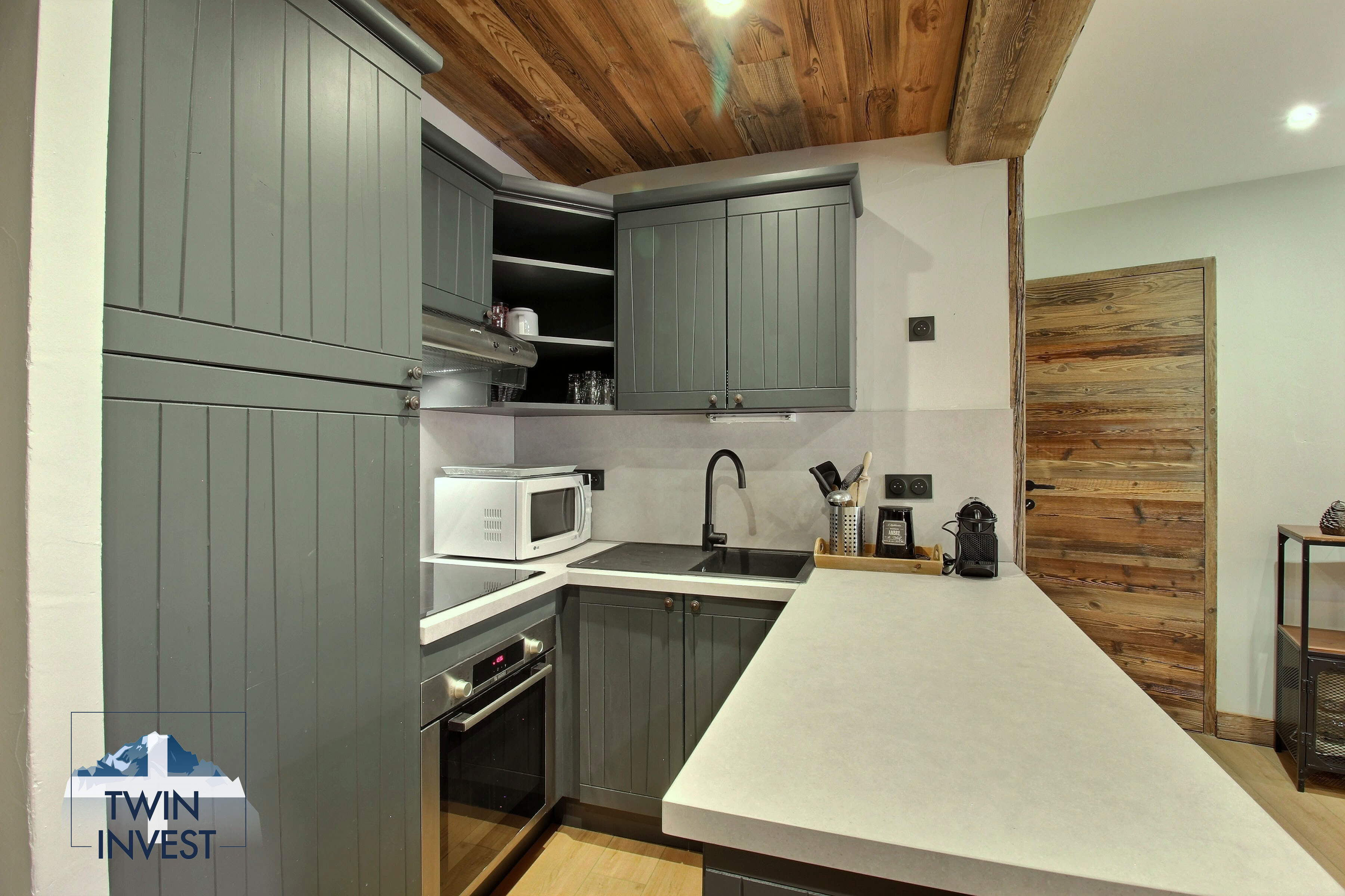 - D'une cuisine entièrement équipée ouverte sur un vaste séjour lumineux avec poêle à bois ;