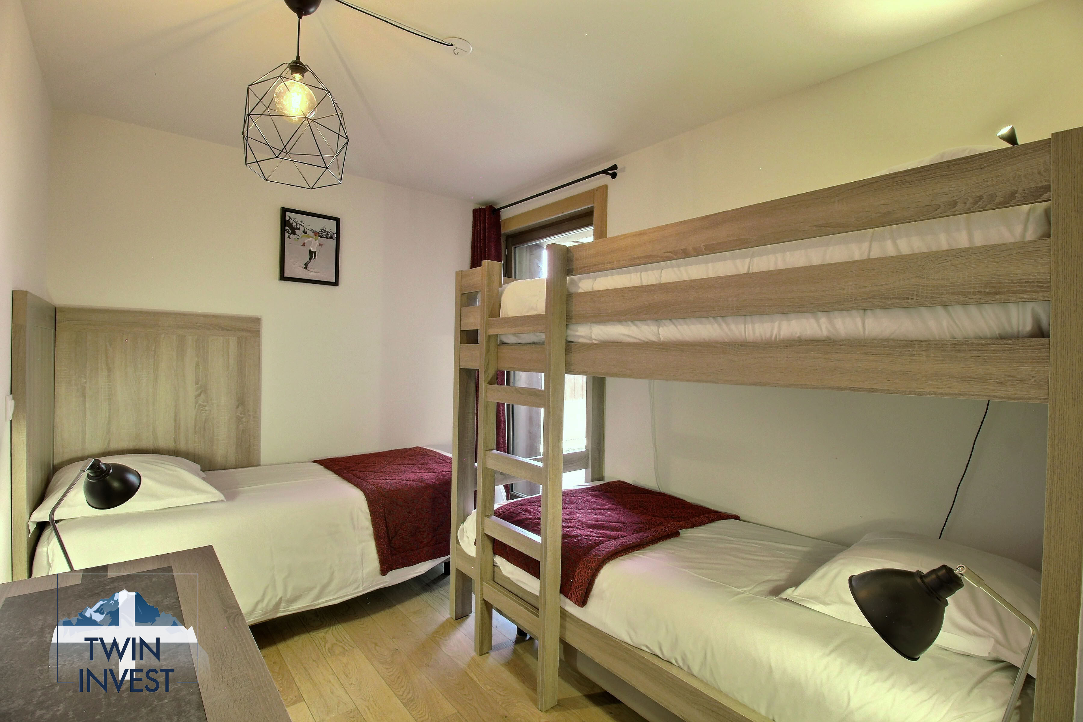 - D'une seconde chambre avec trois lits simples, placards de rangement ;